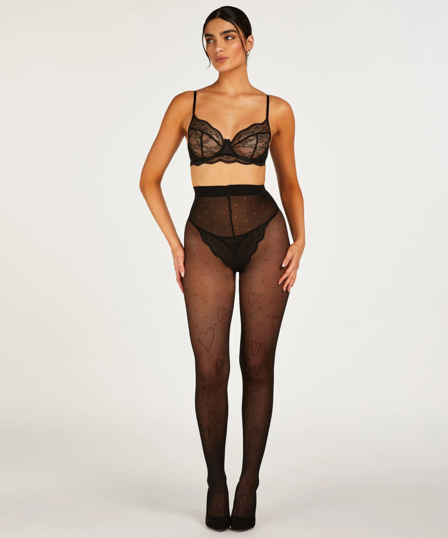 Montrez votre côté romantique avec ces bas ! Décoré sur toute sa surface de subtils motifs de cœurs. Associez-les à un ensemble ou à une tenue parfaite !