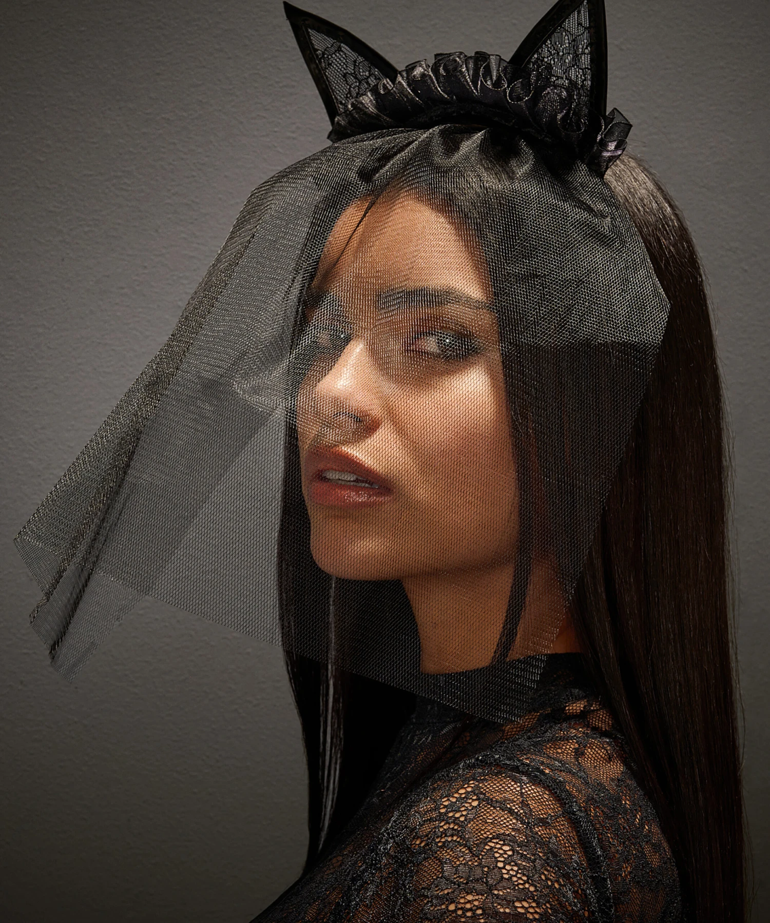 Vous voulez épicer les choses ? Essayez cet ensemble de déguisement de chat sexy ! Avec un serre-tête en dentelle à oreilles de chat, un voile en maille et un harnais à lanières. Appartenant à la collection Private.