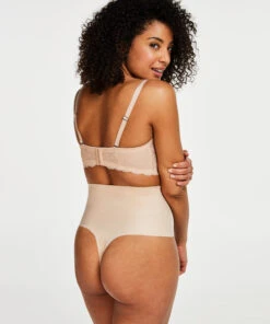 String Taille Haute Avec Gaine Sculptante En Dentelle Scuba – Beige