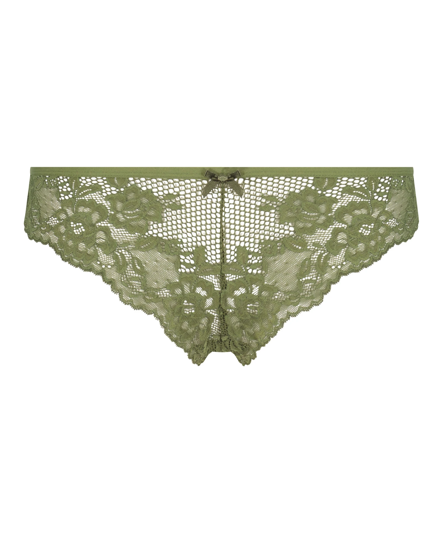 Slip brésilien réalisé dans une qualité semi-transparente décorée de dentelle. Avec un joli petit nœud devant !