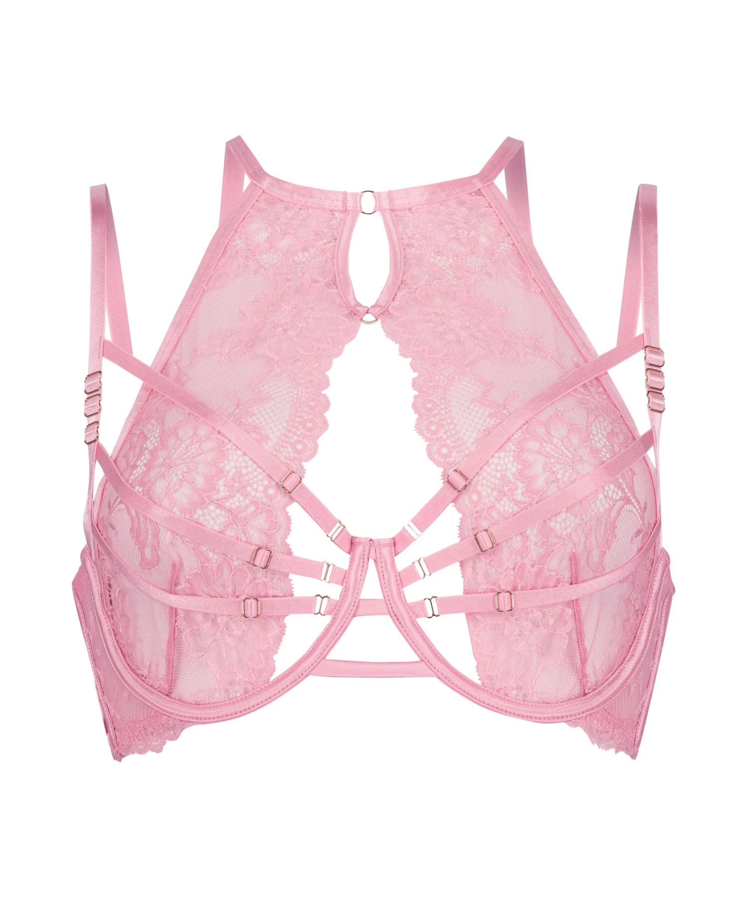 Sentez-vous sexy dans ce superbe soutien-gorge non rembourré tout en dentelle. Présentant un design en dentelle à l’encolure en forme de licou pour un look des plus sexy et romantique. De nombreux détails réglables sur les bonnets et les bretelles permettant de s’adapter à la perfection à votre silhouette. Orné de matériel doré. Ne manquez pas cette occasion !