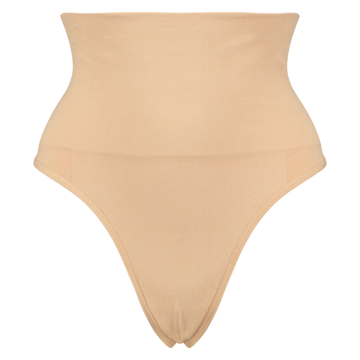 String taille haute à effet correcteur sur le ventre et les hanches. Modèle sans coutures et donc parfait sous les vêtements ajustés.