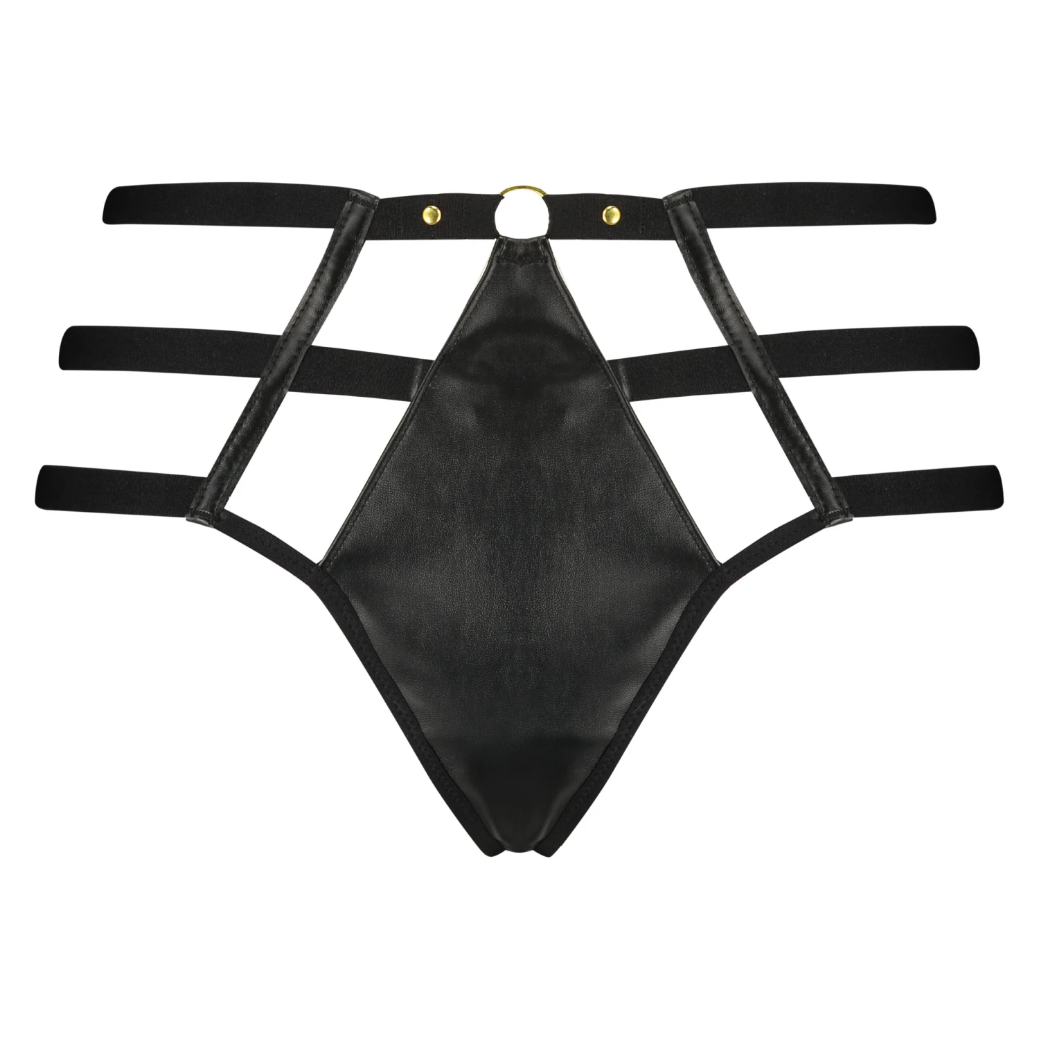 Sentez-vous sexy dans ce string ! Le string a de nombreuses sangles et de faux détails en cuir pour le rendre unique. À combiner avec le soutien-gorge assorti pour créer l’ensemble parfait ! Une partie de la collection privée.